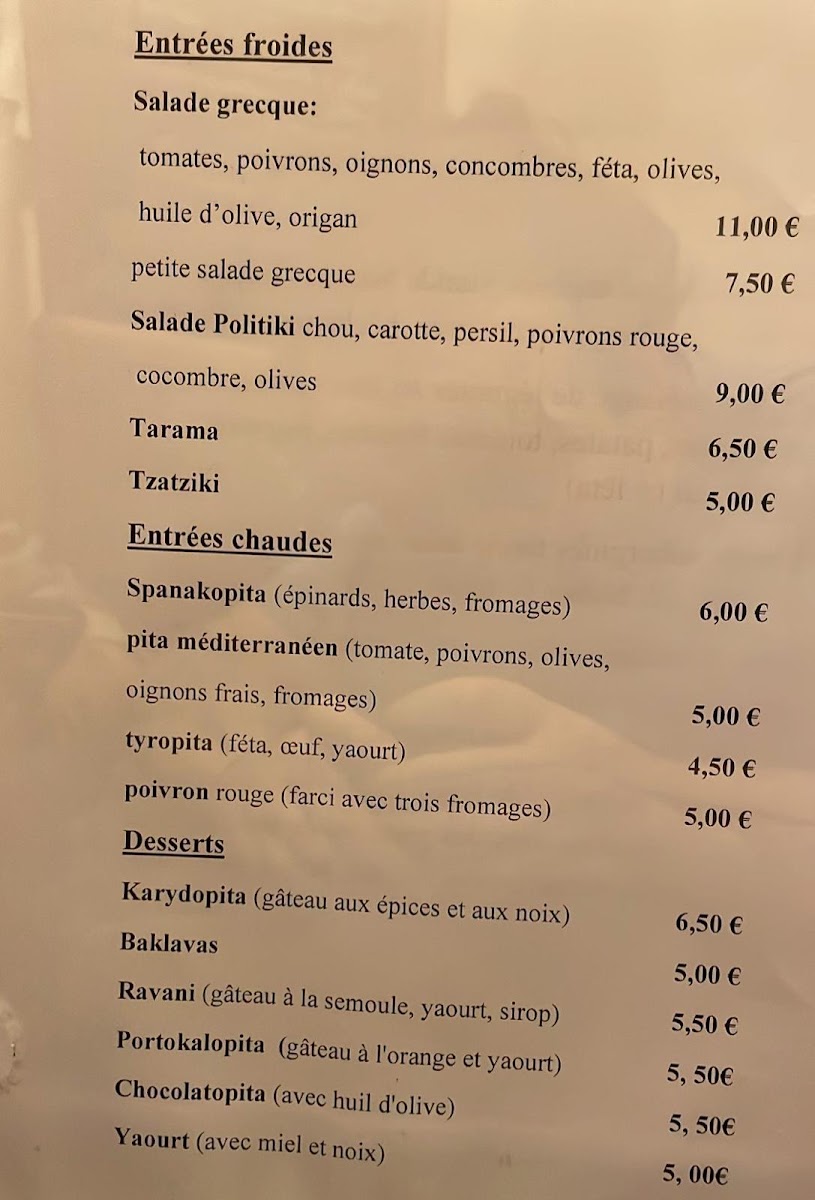 The menu is structured to serve both casual dining and more leisurely meals. It is suitable for lunch or dinner, with options that cater to light bites as well as fuller meals. Visitors typically use the menu for relaxed dining experiences, often followed by dessert and coffee.